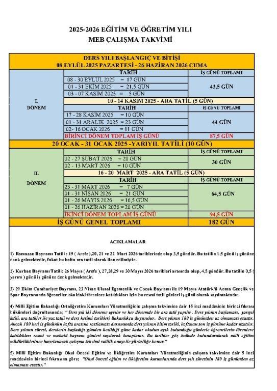 2025-2026 Eğitim Öğretim Takvimi Yayınlandı!